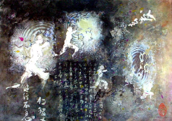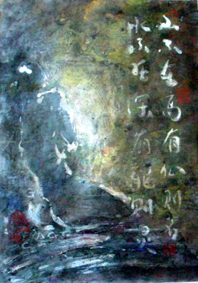 This series of paintings has the explicit intention of bringing together two traditionally separate realms: east and west, and art and science. This motif I draw from my own experience: I was born in Hong Kong, a person of oriental origin, yet I am a proud Canadian. Being a medical researcher has plunged my thoughts into a rational, factual realm, and yet I try to retain the culture and tradition of my roots. I try to synthesize oriental and occidental ideas and techniques which surpass traditional cultural boundaries.